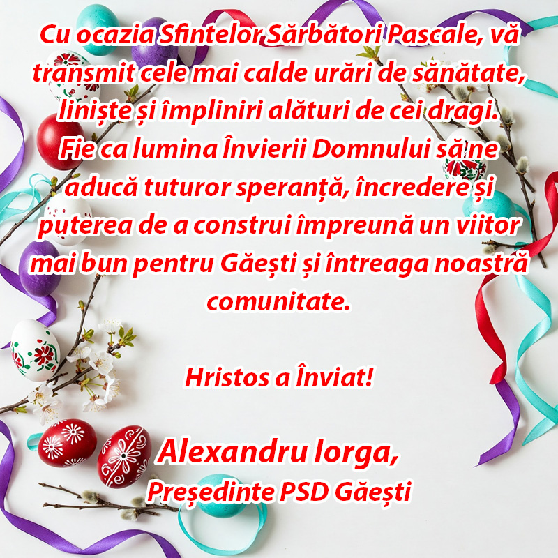 Primarul Daniel Cristian Stan cheamă târgoviștenii în centrul orașului: „Aprindem împreună lumina speranței! 09-04-2026