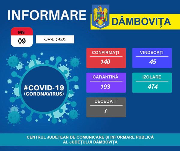 În contextul ultimelor evoluții legate de Județul Dâmbovița, afectat de noul Coronavirus – COVID 19 și având in vedere raportarea, de azi 09 Mai 2020, a Centrului Judetean de Comunicare și Informare Publică al Județului Dâmbovița, Primăria Comunei Sălcioara solicită cetățenilor din localitate să țină cont de următoarele recomandări: