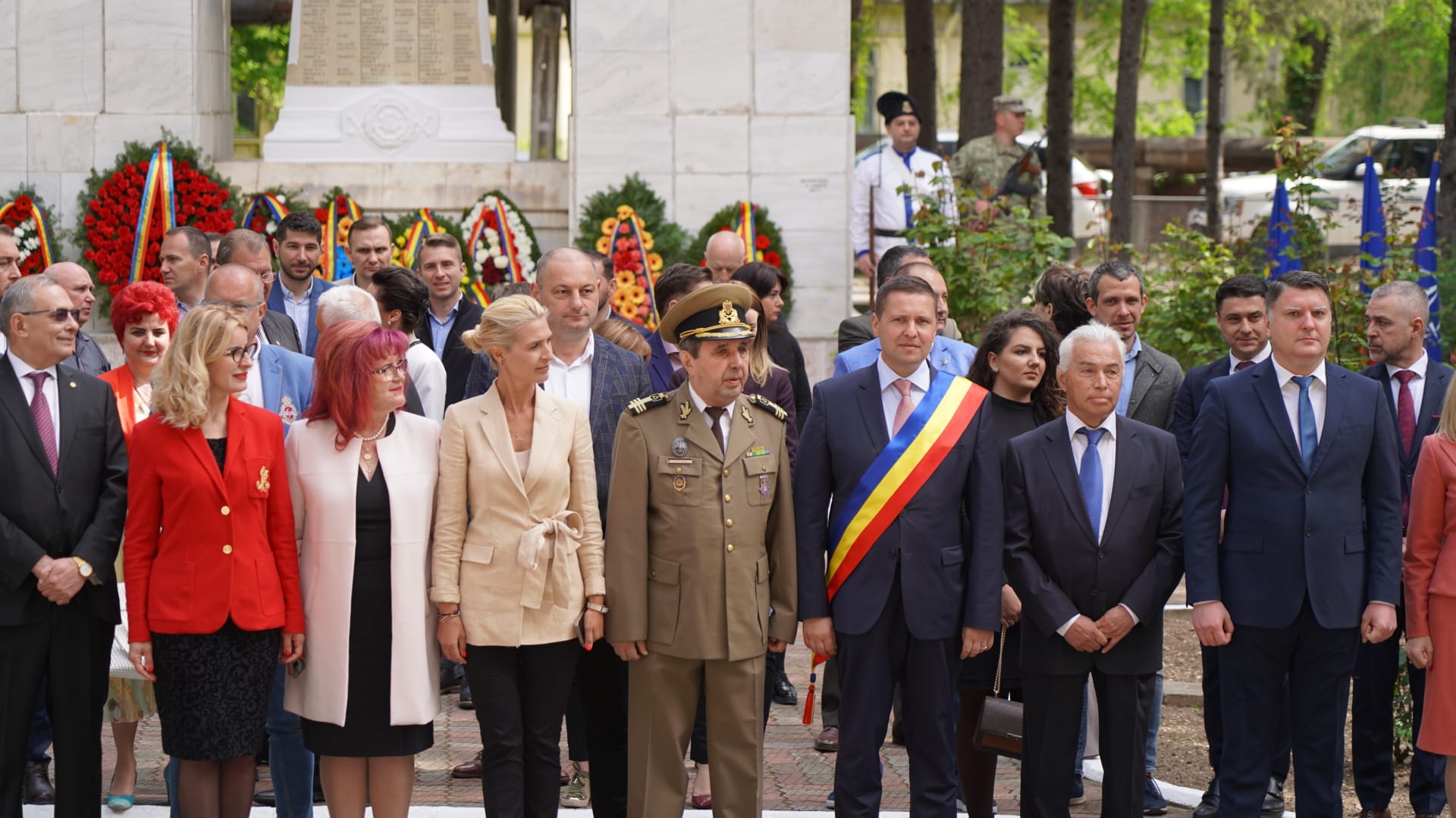 Manifestările s-au încheiat cu defilarea gărzii de onoare și depunerea de coroane și jerbe de flori la Monumentul Eroilor.