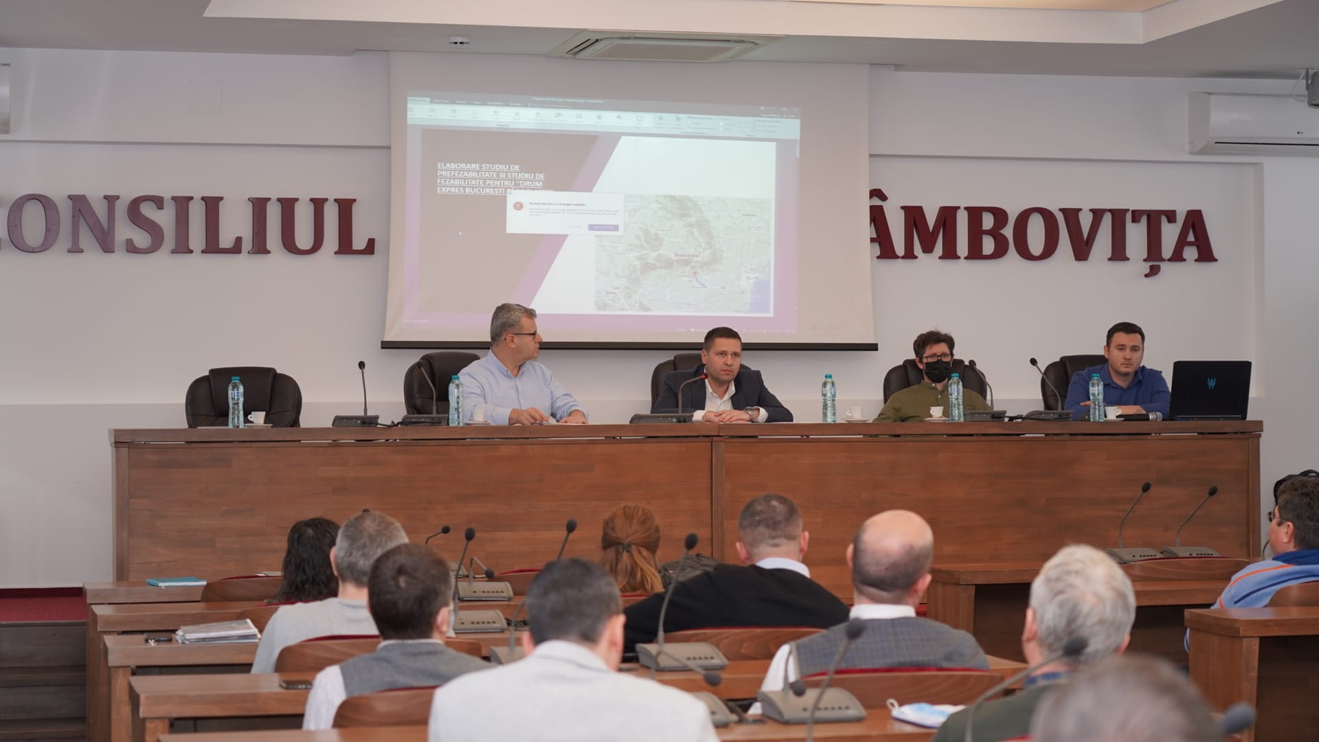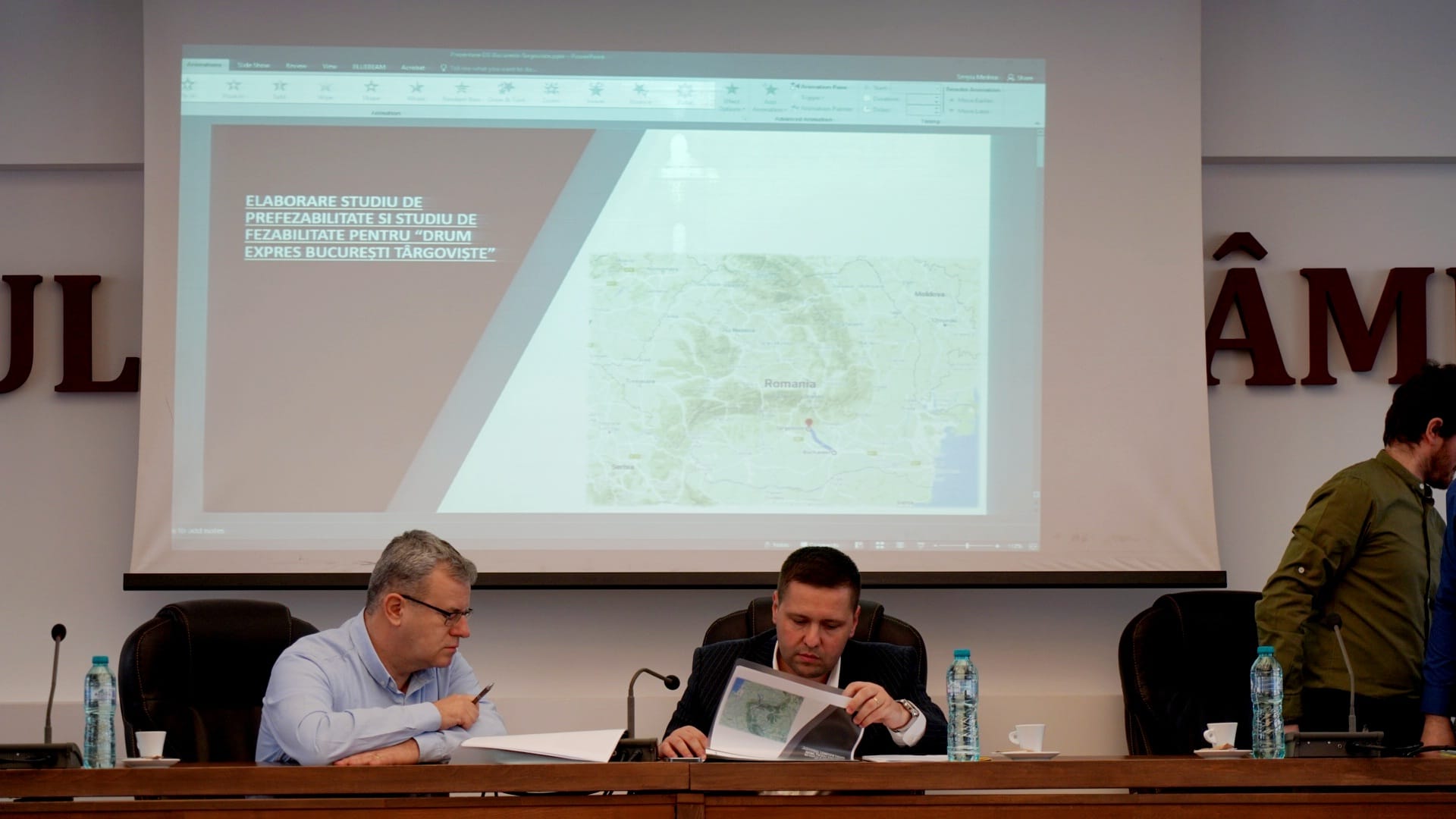 Pentru a discuta despre viitorul acestui proiect de anvergură, la întâlnirea de astăzi au fost prezenți: administratorul public Cristian Avanu, secretarul de stat în Ministerul Transporturilor și Infrastructurii, Ionuț Săvoiu, reprezentanți ai Companiei Naționale de Administrare a Infrastructurii Rutiere, reprezentanți ai proiectantului, reprezentanți ai administrației publice din localitățile aflate de-a lungul celor 4 trasee propuse pentru DX București – Târgoviște, angajați ai departamentelor de specialitate din cadrul Consiliului Județean Dâmbovița.