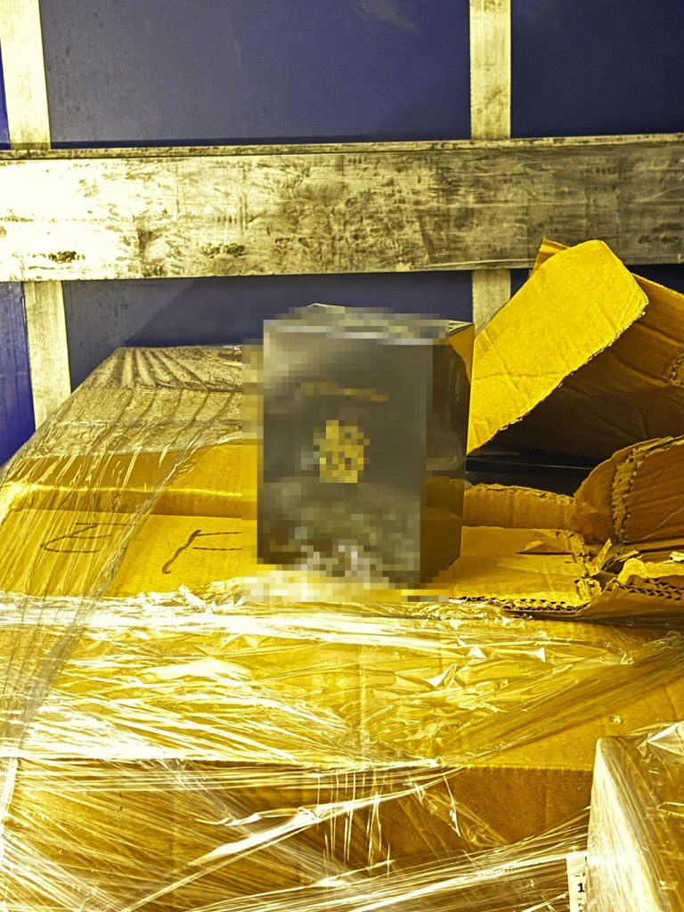 Cu ocazia efectuării controlului asupra mijlocului de transport, în compartimentul de marfă, printre bunurile transportate, au fost identificați 19 paleți încărcați cu cutii de carton. În interiorul acestor cutii au fost descoperite 32.220 de flacoane de parfum purtând însemnele unor mărci cunoscute, existând suspiciunea rezonabilă că produsele sunt contrafăcute.