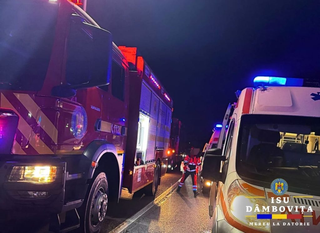 Din primele cercetări efectuate, s-a stabilit că un bărbat, de 55 de ani, cetățean turc, în timp ce ar fi condus un ansamblu de vehicule pe DN 61, în afara localității Petrești, din direcția Petrești către Găești, ar fi pătruns pe sensul opus de deplasare și ar fi intrat în coliziune cu un autoturism condus de un bărbat, de 40 de ani, din comuna Mogoșani.