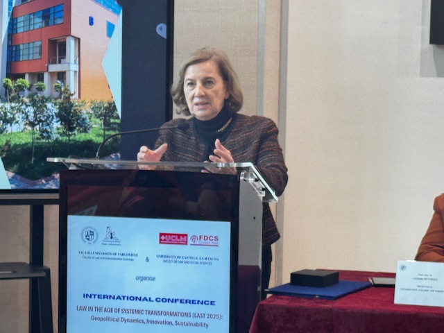 „Un om poate schimba o lume, un profesor poate schimba lumea din fiecare om. Sunt 20 de ani în care am învățat împreună, am crescut împreună, am construit legături durabile între oameni, culturi și sisteme juridice”, a declarat aceasta, legând momentul de desfășurarea Conferinței Internaționale Dreptul în era transformărilor sistemice (LAST 2025).