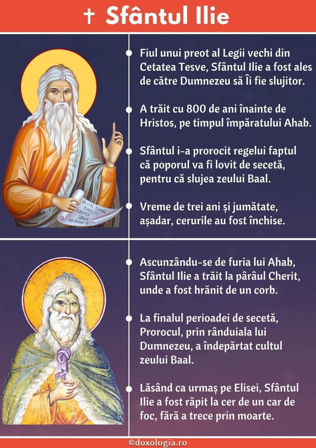 În tradiția populară Sf. Mare Prooroc Ilie este considerat ocrotitorul recoltelor, care a rămas în istoria Bisericii Ortodoxe ca un exemplu de credință și curaj demn de urmat.