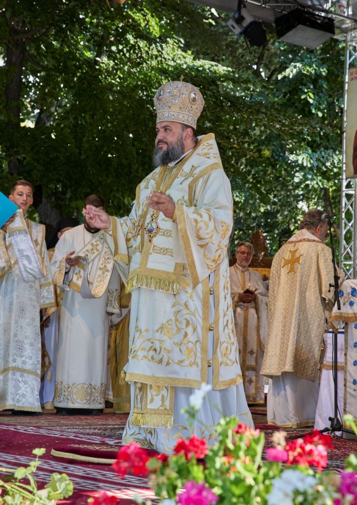 În cuvântul rostit pe podiumul liturgic amenajat în apropierea Catedralei eparhiale, Înaltpreasfinția Sa a evidențiat faptul că „sfinții strălucesc pe firmamentul Bisericii ca niște luceferi ai luminii, adevărului și dreptății. Ei privesc pământul și realitățile lumii ca pe un prilej de cucerire a cerului. Izvorul sfințeniei este Duhul Sfânt care lucrează în Biserică – Trupul cel viu al Mântuitorului Hristos Cel răstignit și Înviat. În istoria neamului românesc vedem că în fiecare epocă Dumnezeu Cel Bun a ridicat sfinți care să călăuzească aspirațiile înaintașilor noștri, să le lumineze drumul și să le ofere exemple statornice de credință, de unitate și de speranță, pentru a birui toate vitregiile vremurilor”.