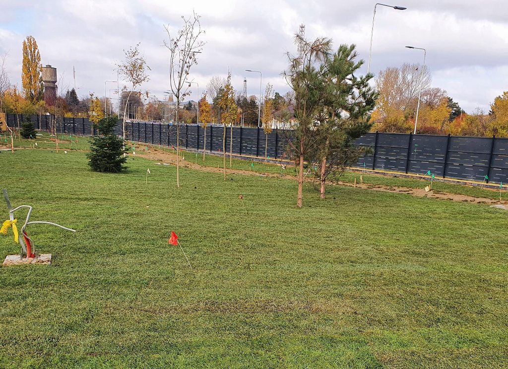 În cadrul investiției menționate, spațiul verde cuprinde zone cu vegetație bogată și peluze ce pot fi folosite ca locuri de picnic. Se plantează aproximativ 500 de arbori și arbuști din specii rășinoase și foioase și se vor amenaja zone cu flori. Sistemul automat de irigații este finalizat. Iluminatul ambiental se va realiza cu stâlpi de iluminat și corpuri LED, iar iluminatul decorativ va presupune bolarzi și proiectoare.